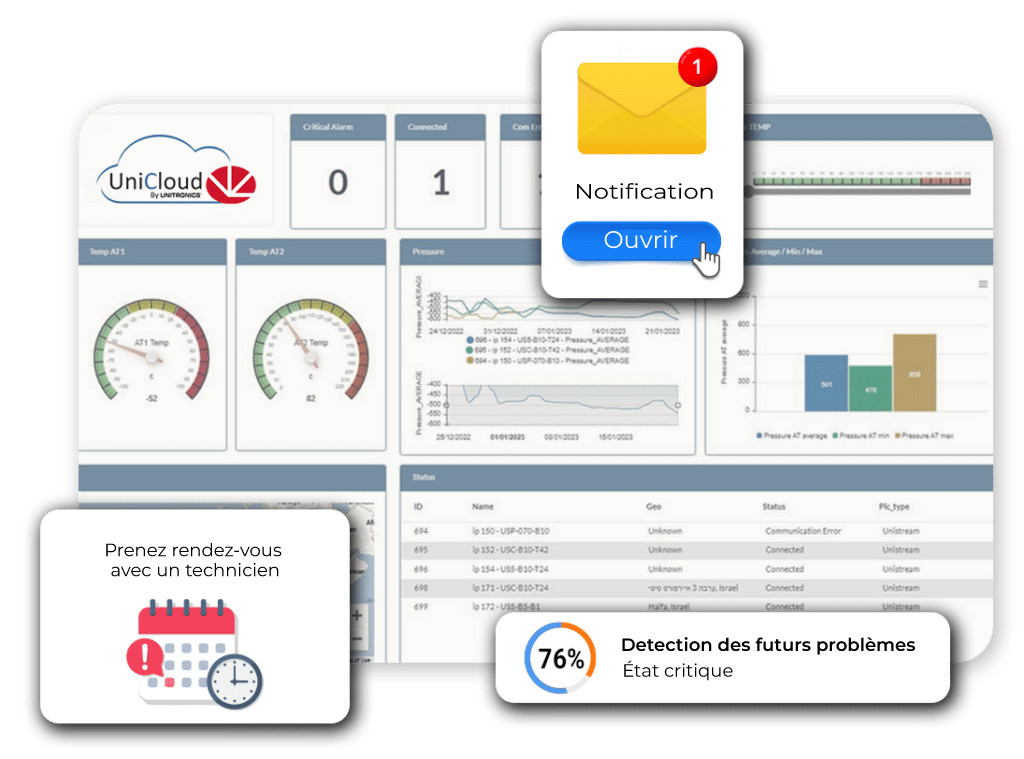De bout en bout, évolutive et sécurisée, la plateforme UniCloud vous permet de construire facilement des tableaux de bord personnalisés, sans avoir besoin d'expertise en Cloud. Vous pouvez collecter, analyser et exploiter les données d'application des API pour améliorer l'efficacité, résoudre les problèmes, mettre en œuvre la maintenance préventive, afin de réduire vos charges de gestion et de vous laisser du temps pour développer votre entreprise.
